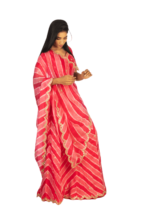 Indulge in timeless elegance with this exquisite Rani Pink Lehenga, designed in a striking dual-tone criss-cross pattern. Crafted from luxurious organza fabric, this lehenga features intricate Gotta Patti work that exudes sophistication and charm. The matching Rani Pink dupatta complements the ensemble perfectly, making it an ideal choice for weddings, festive occasions, and grand celebrations.