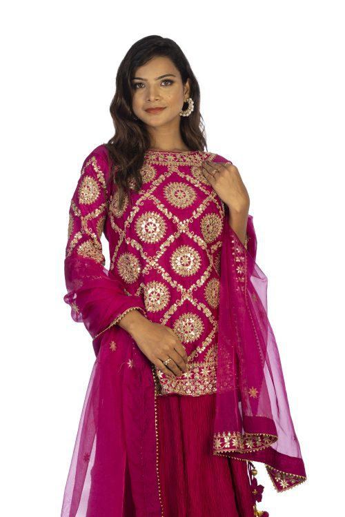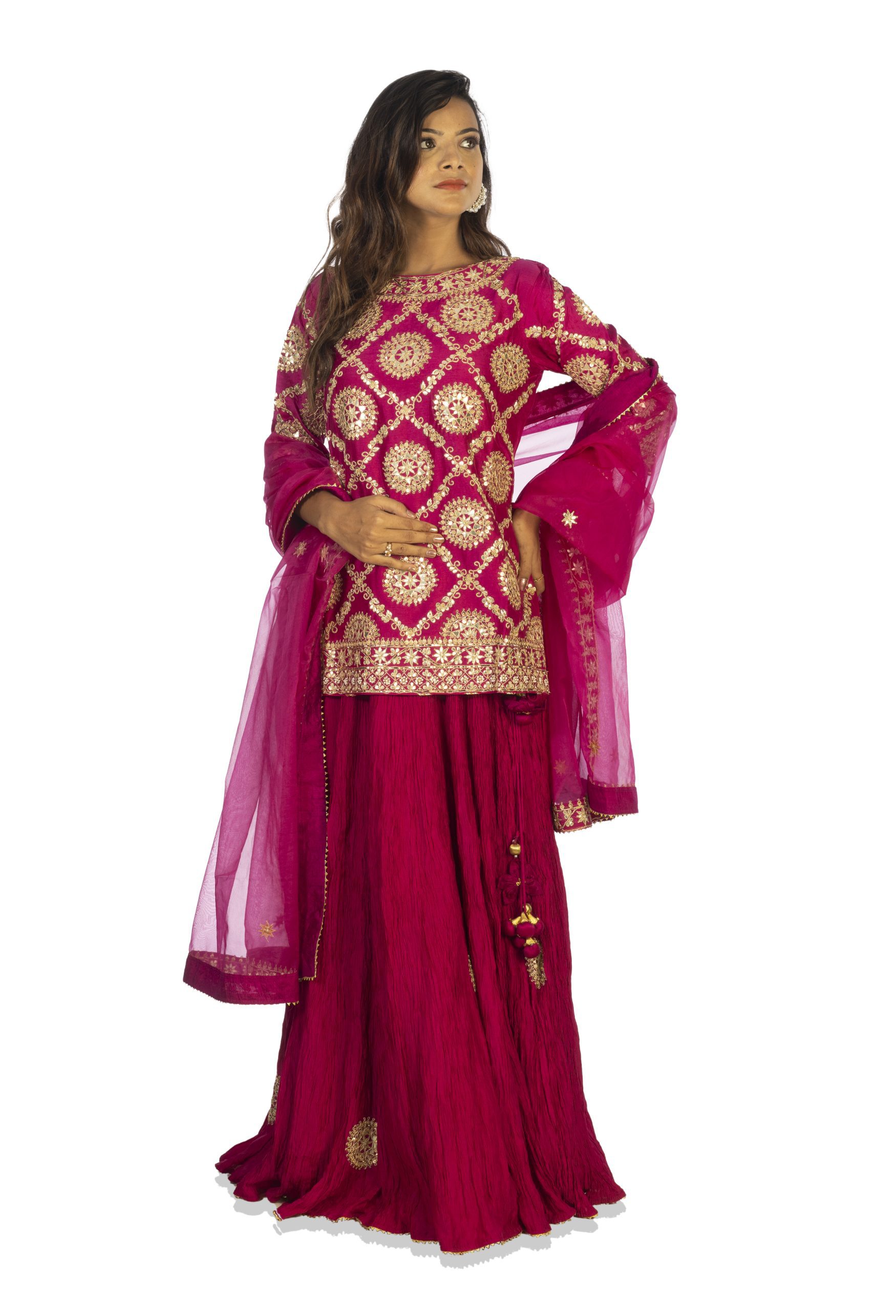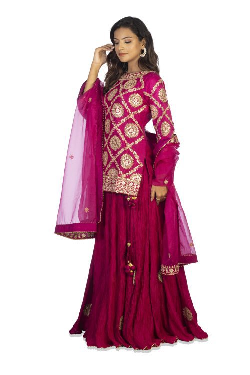 Rajwadi Short Kurta with Heavy Gotta work , Crush Ghagara with all over small Buttis