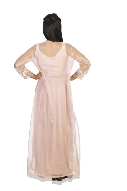 Add a touch of sophistication to your wardrobe with this elegant Onion Pink Indowestern Dress. Featuring a stylish crop top paired with a long organza jacket, this ensemble is beautifully adorned with intricate Moti and Kardana work. The luxurious fabrics and exquisite craftsmanship make this outfit perfect for festive occasions and special events, ensuring you shine gracefully and elegantly.