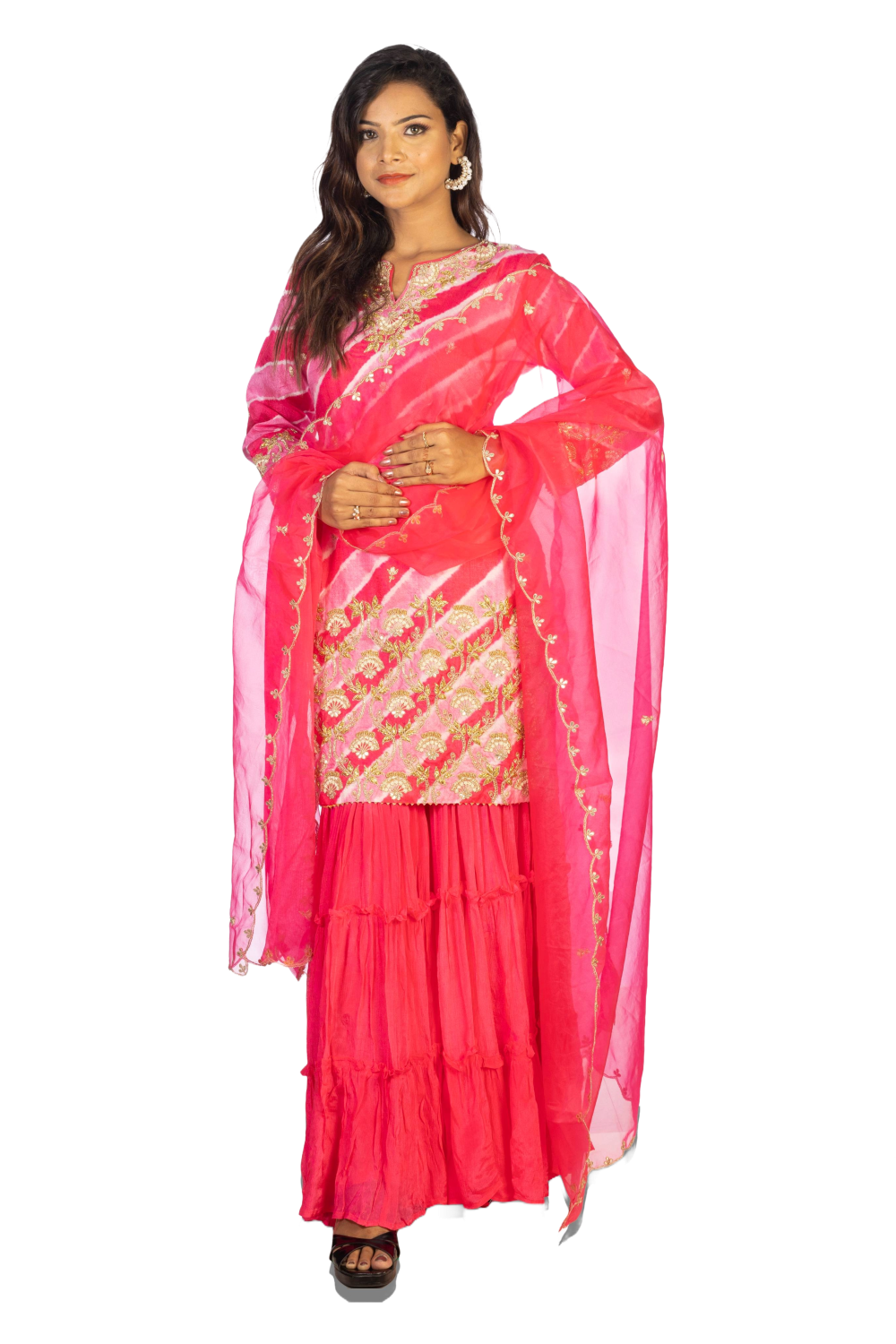 Rani Pink Sharara Set with Tusser Kurti and Organza Dupatta
